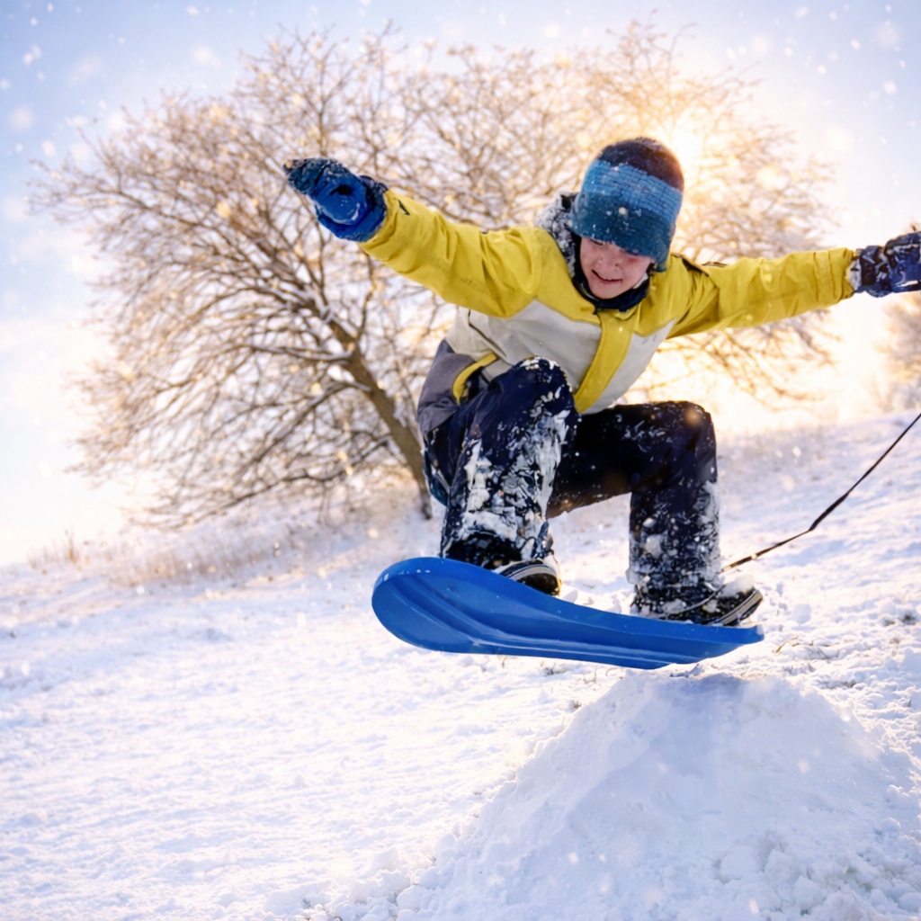 Super Alternative zum Schlitten, leicht zu fahren und viel Spaß für Kinder und Erwachsene gleichermaßen.